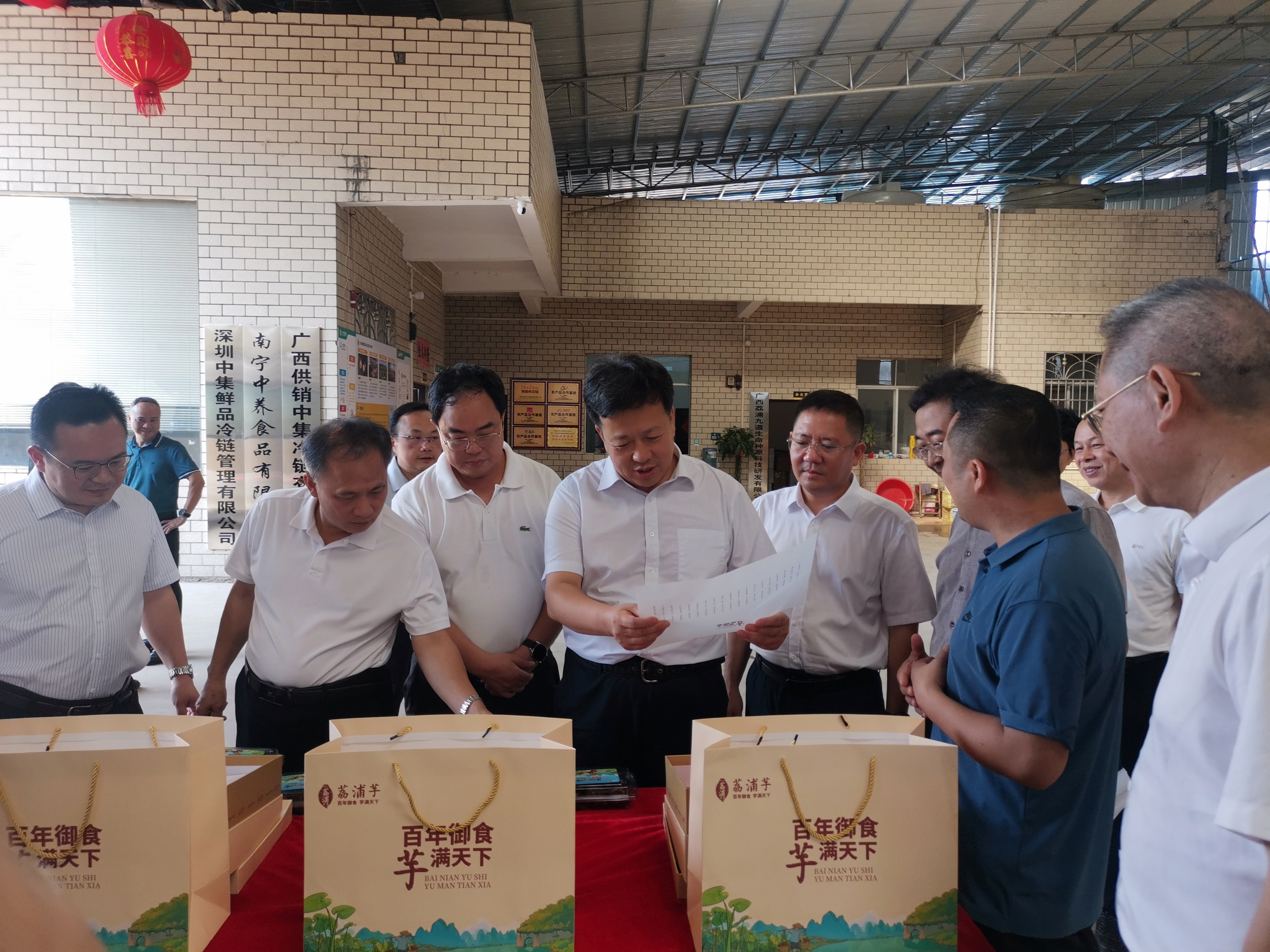 7月11日,调研组一行前往荔浦市,先后调研了荔浦县中养农业有限公司、荔浦市保联食品有限公司、荔浦县芋口福食品科技有限公司、荔浦市智慧电商物流园以及荔浦衣架之都电商展示厅,并出席了广西供销荔浦地标农产品全程冷链处理中心(一期)的建成投产仪式。调研组一行详细了解了荔浦芋头产业的发展历程、现状、优势以及未来的发展规划。