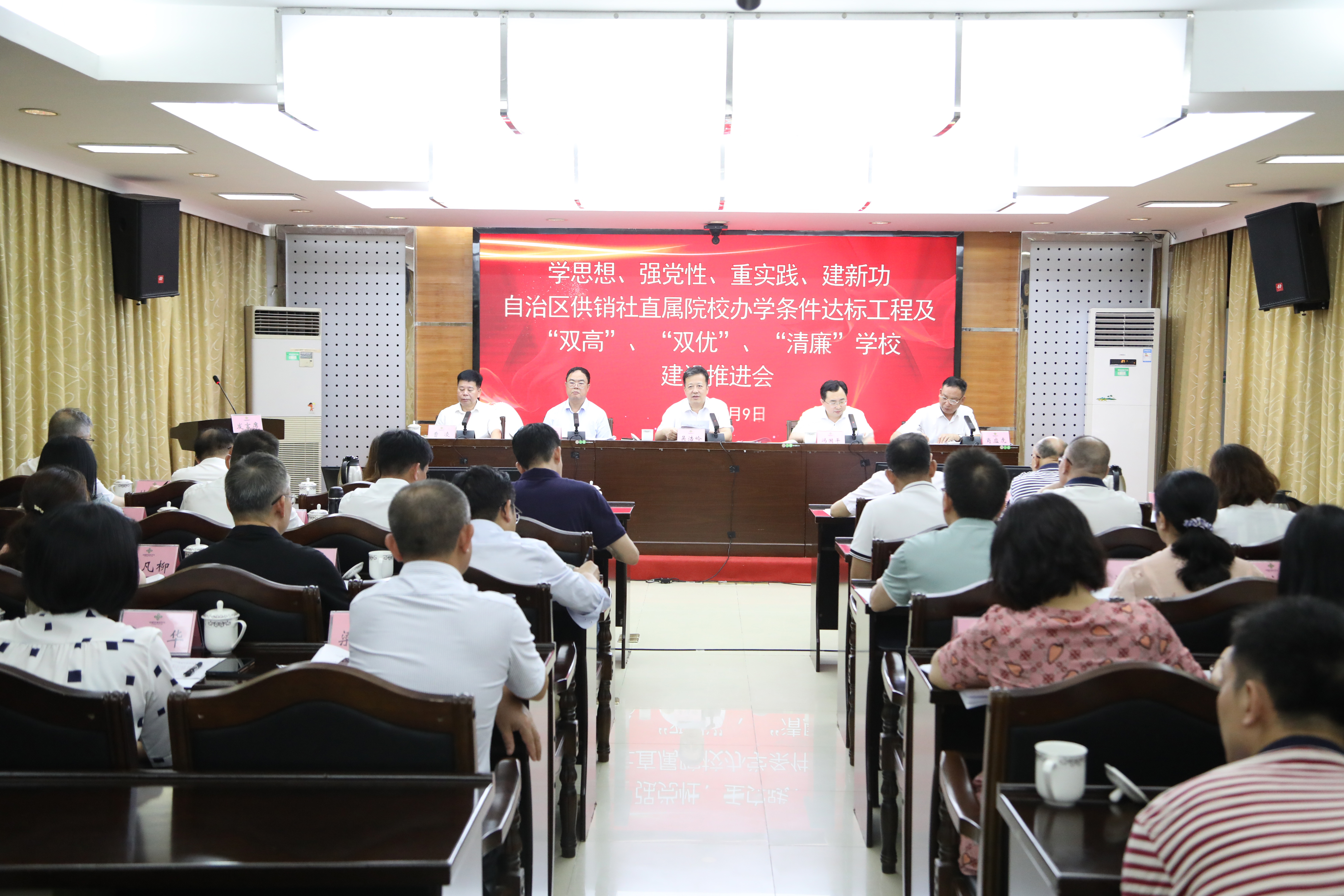 会上,广西经贸职业技术学院、广西工贸职业技术学校、广西商贸高级技工学校负责同志围绕推进办学条件达标工程及“双高”、“双优”、“清廉”学校建设作了交流发言。吴浩岭主任对各直属院校“达标”“双高”“双优”“清廉”建设工作提出明确要求:一要提高政治站位,统一思想认识,坚持以习近平新时代中国特色社会主义思想为指导,从捍卫“两个确立”、做到“两个维护”、教育强国等高度,深刻认识党和国家以及自治区党委、政府全面推进职业教育高质量发展的重大意义,要以高度的政治责任感和历史使命感,不折不扣落实好国家和自治区有关文件精神。二要以“时不待我,只争朝夕”的精神,抢抓机遇,增强使命感、责任感和紧迫感,认清形势、摸清家底、明确任务、争优进位。三要以深入开展学习贯彻习近平新时代中国特色社会主义思想主题教育为契机,结合巡视整改、文明单位创建、清廉学校建设,理清思路、创新方法,落实好“一校一策”,抓实抓细各项工作。四要深入学习习近平总书记关于安全生产的重要论述和重要指示批示精神,以“时时放心不下”的责任感,采取切实有效的措施,全力抓好安全生产工作,坚决防范和遏制各类安全事故的发生。五要充分认识推进清廉学校建设的重大意义,落实清廉学校建设各项任务要求,把清廉建设融入供销社职业教育发展的各方面全过程。