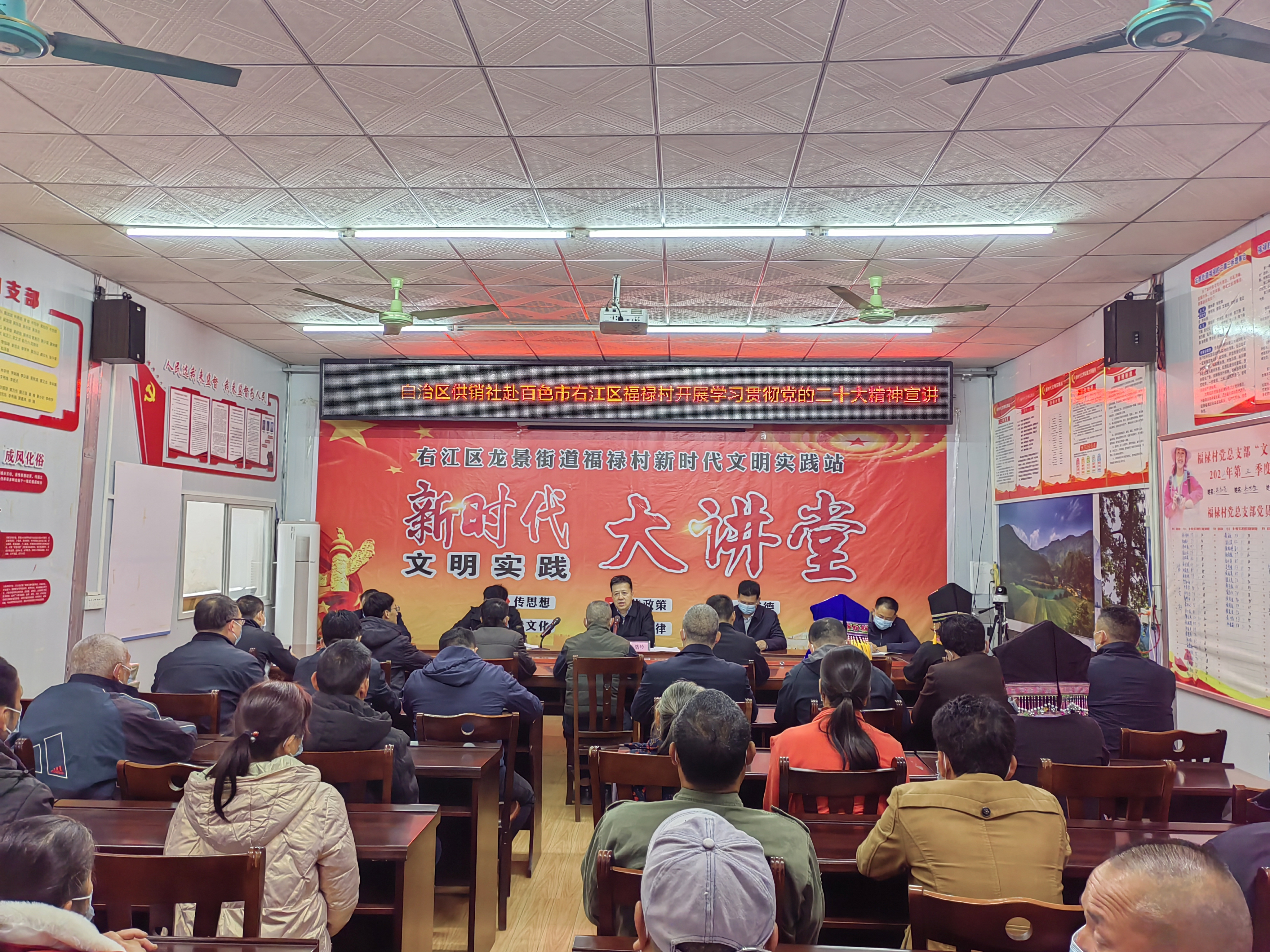 首先,吴浩岭主任在福禄村向村两委干部、驻村工作队队员和村民党员代表宣讲了党的二十大精神。他指出,党的二十大是在全党全国各族人民迈上全面建设社会主义现代化国家新征程、向第二个百年奋斗目标进军的关键时刻召开的一次十分重要的大会。大会制定了当前和今后一个时期党和国家的大政方针,描绘了以中国式现代化全面推进中华民族伟大复兴的宏伟蓝图,为持续推进乡村振兴指明了方向。他强调,深入学习贯彻党的二十大精神是当前和今后一个时期的首要政治任务,希望村委、驻村工作队及广大党员同志要深刻学习领会党的二十大精神,为福禄村巩固拓展脱贫攻坚成果同乡村振兴有效衔接作出更多贡献,让全村老百姓过上更加幸福美满的生活。
