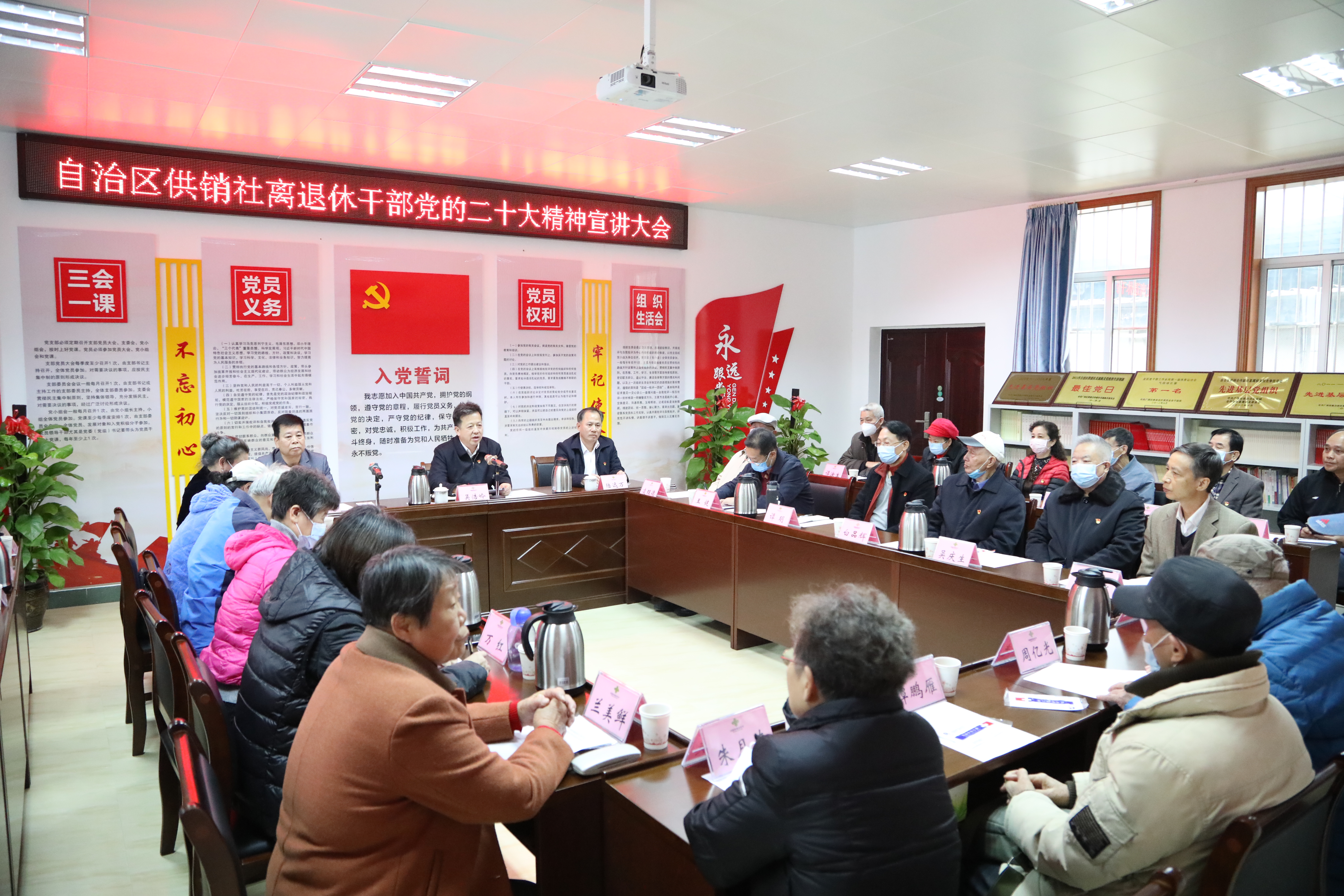 为全面学习、全面把握、全面落实党的二十大精神,把区联社离退休干部的思想统一到党的二十大精神上来。12月7日下午,动漫 举行离退休干部学习贯彻党的二十大精神专题宣讲会,党组书记、理事会主任吴浩岭同志作专题宣讲,党组成员、理事会副主任陆远万同志通报全区供销合作社系统2022年1—10月经济运行情况,二级巡视员曹凌同志主持会议。