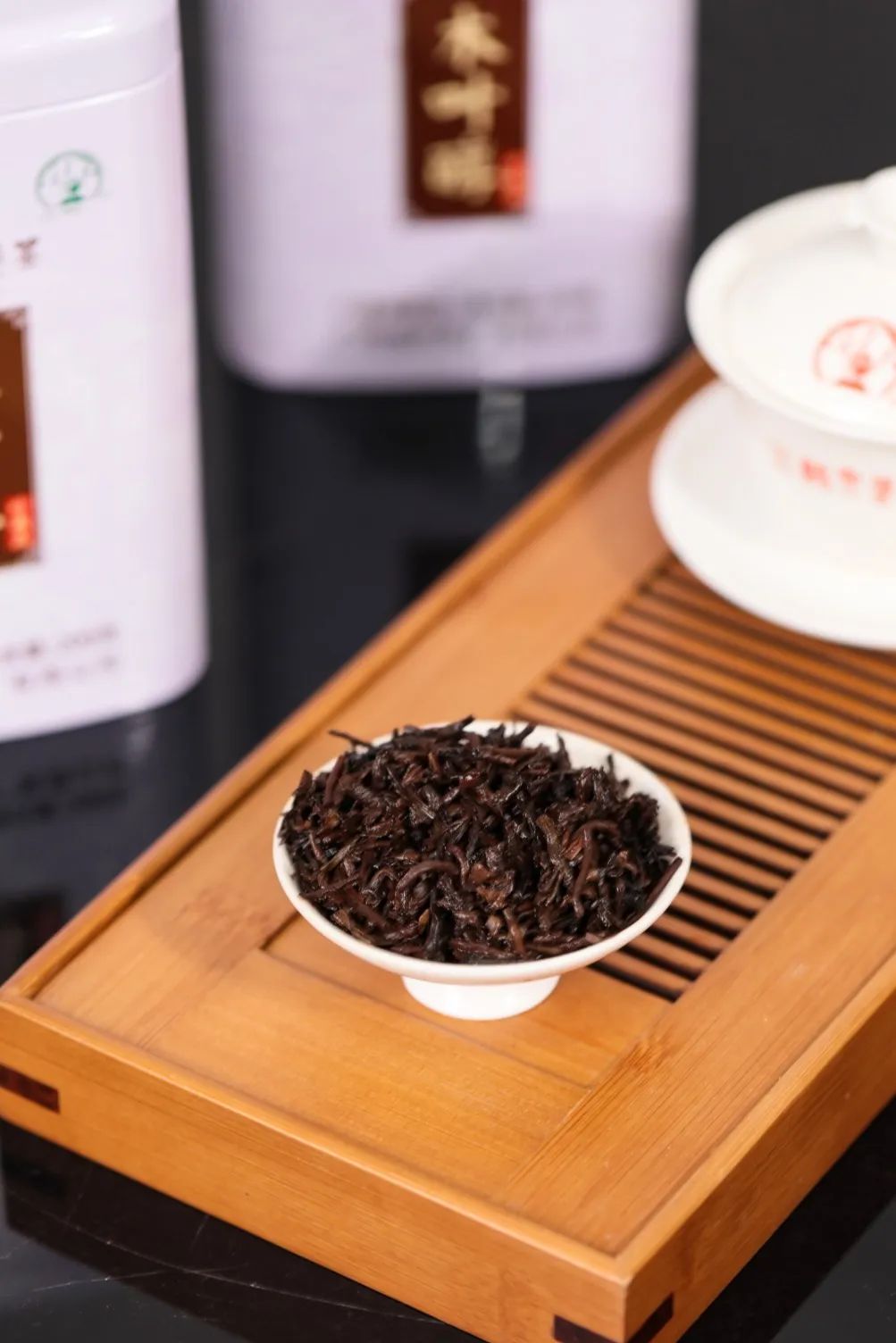 干茶条索紧细肥壮,色泽乌褐油润,金黄色茶芽占比高,香气高扬持久,齐集了木质香、槟榔香、陈香、花果香的复合香。