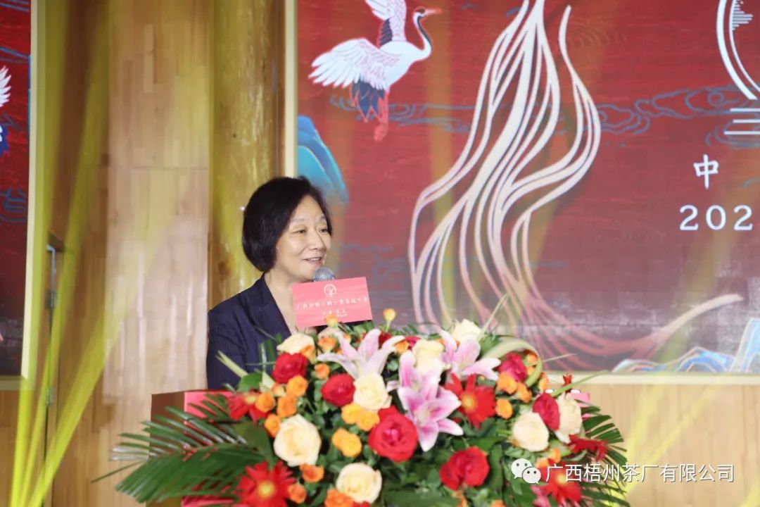 广西梧州茶厂有限公司董事长温而刚向前来参加三鹤六堡茶推介会的嘉宾、茶友表示欢迎和感谢,并作“三鹤六堡茶”品牌推介。广西梧州茶厂有限公司成立于1953年,至今已有70年历史,是动漫