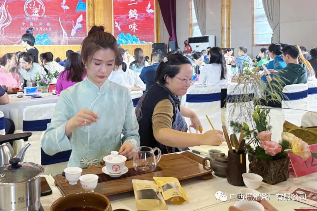 此次,梧茶公司将三鹤六堡茶最经典的“陈香”“金花”“槟榔香”三款代表性产品带给中原地区的茶友们。在品鉴过程中,温而刚董事长向茶友们讲述了三鹤六堡茶的匠心传承,对于核心工艺的把控,以及不可复制的绝佳陈化环境等,引导茶友们深入透彻地了解三鹤六堡茶,品味三鹤六堡茶,享受三鹤六堡茶。茶友们纷纷被六堡茶“红浓陈醇”的品质特征和突出的健康属性所吸引,并表示三鹤六堡茶潜力无穷,未来可期。