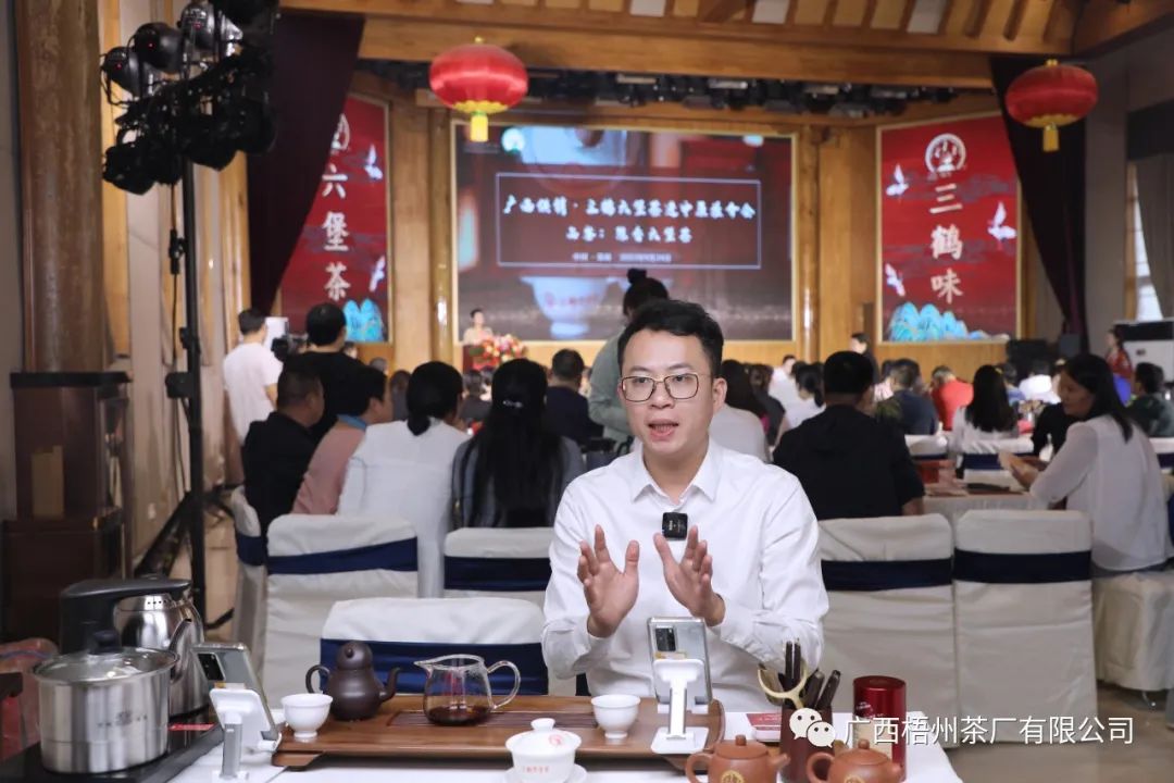 (图为三鹤六堡茶直播间同步向广大茶友分享推介会现场)