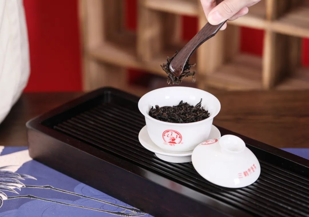 汤色红浓,滋味醇厚爽口,回甘生津明显,槟榔香韵味足;