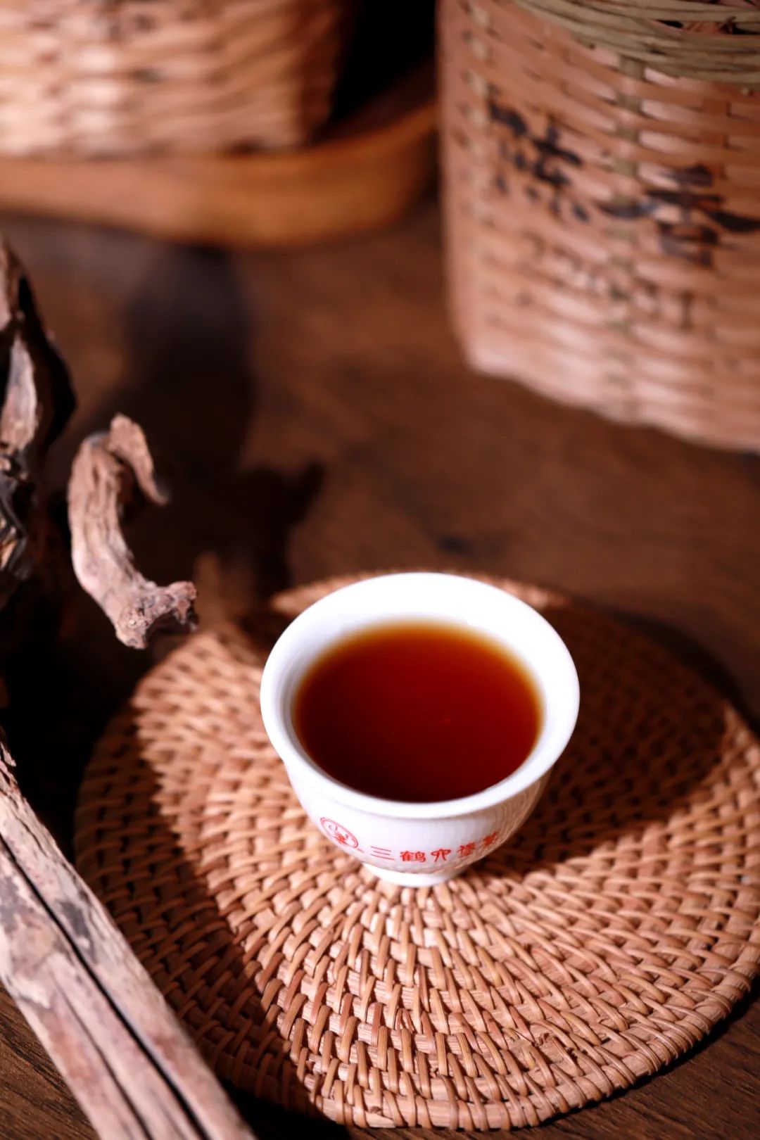 为纪念北京店开业,三鹤特别筹备了一款7千克原箩紧压茶【岭南天工】,采用六堡茶最经典的竹箩加布袋的包装形式,呈现最典型的“三鹤味”,用一杯时光沉淀的醇香,凝聚天工与精心,彰显独特的岭南茶韵。