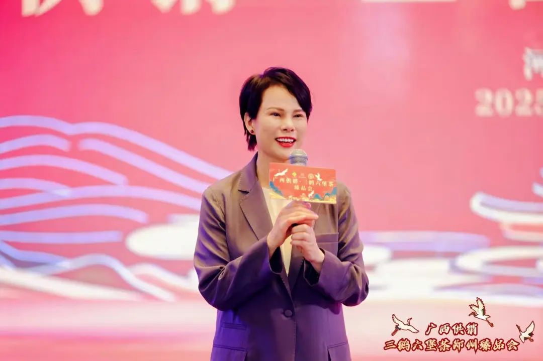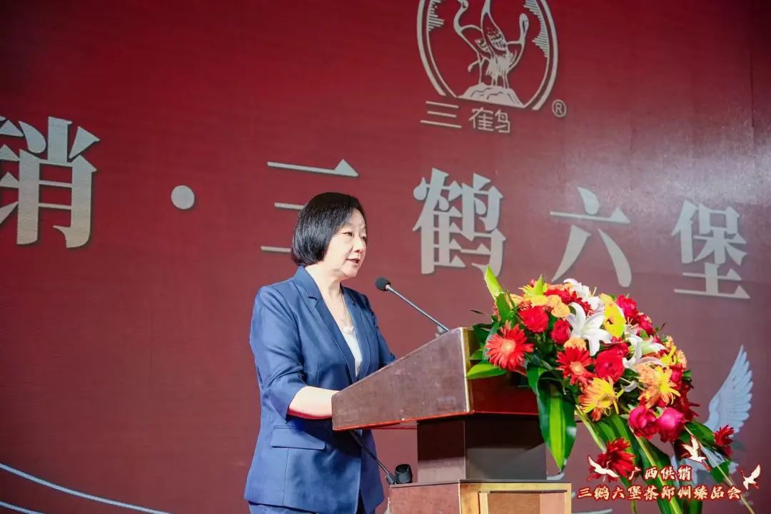 姬霞敏致辞表示,河南地处中原,作为华夏文明的发祥地之一,茶文化底蕴深厚,是中原茶文化的重要阵地。她希望借助此次推介会的契机,与广西六堡茶产业进行深度的联动,推动六堡茶“北上”中原,让更多北方消费者领略三鹤六堡茶的“红浓陈醇”之美,同时也将中原深厚的茶文化底蕴与消费活力,转化为六堡茶产业发展的新动能。